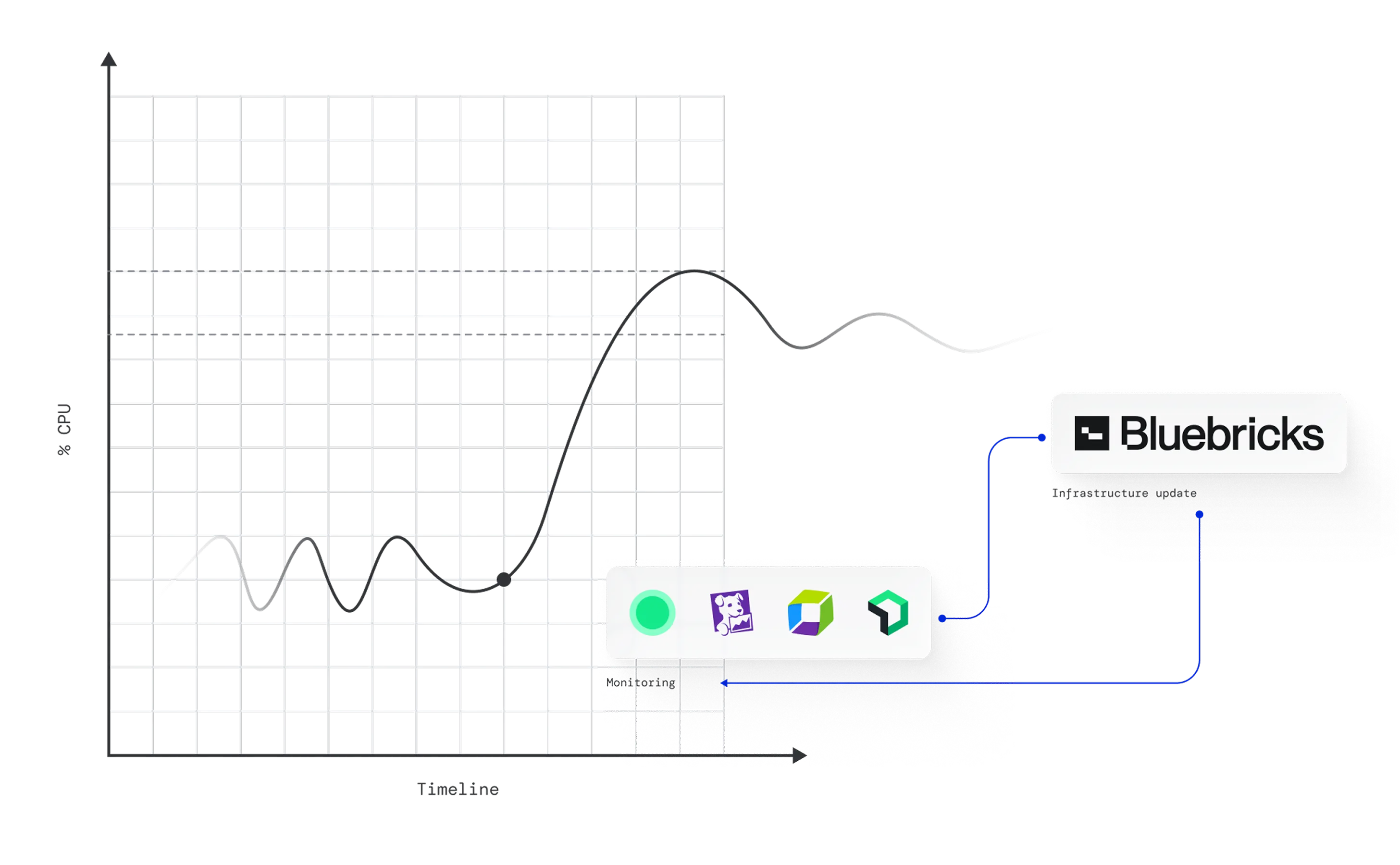 Describe components, relationships, and dependencies using Bluebricks, and deploy when outages occur, without toil or redefinition.